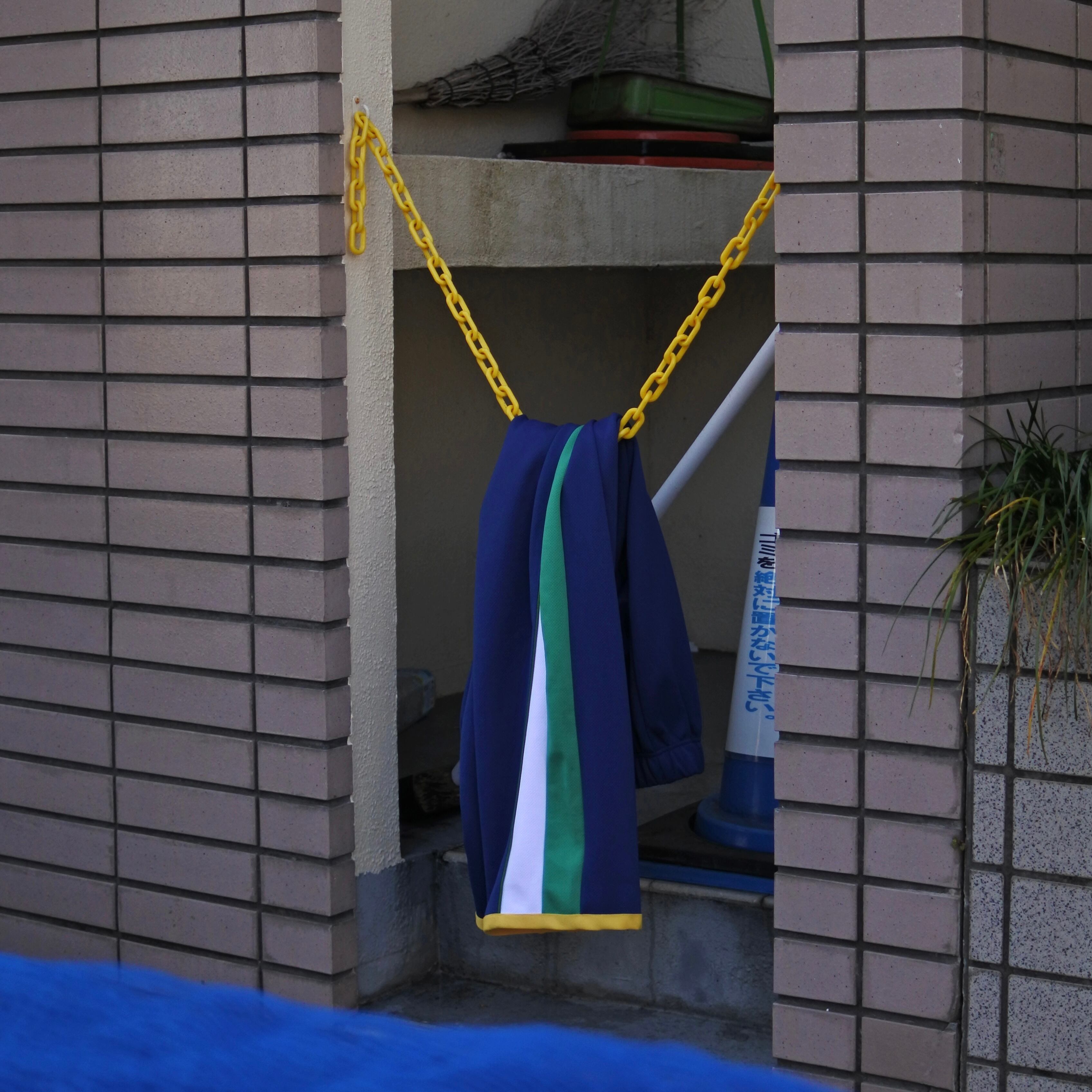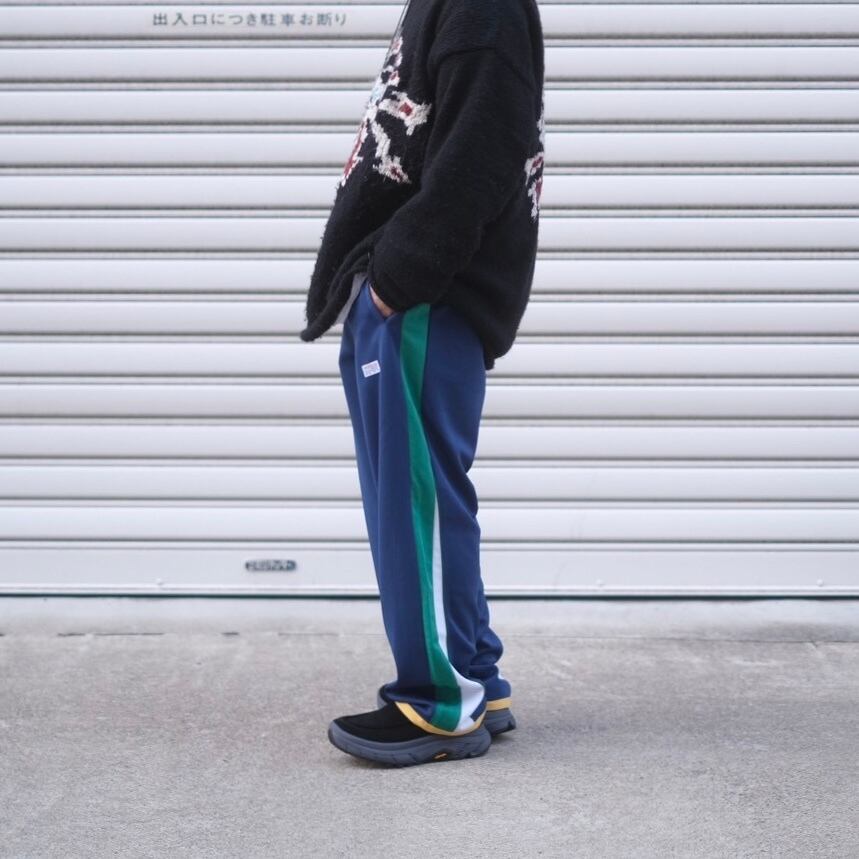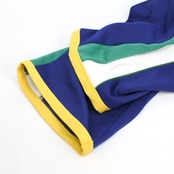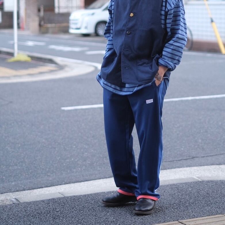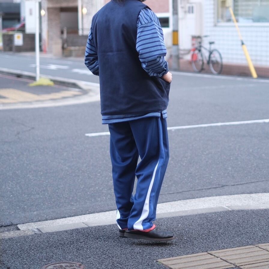 株式会社レイバン製、契約満了となり製造終了した在庫処分品の学校指定ジャージをベースとして使用させて頂きました。本来、特定の学校の生徒が体育の授業で着用するものです。私物の8-90年代 ヒットユニオン製 wilsonのパンツの雰囲気を再現したく裾の仕様などをこちらで加工しております。コーディネートのみならず、人によっては懐かしかったり、新しかったり、そんな感覚も含めて楽しんで頂けますと幸いです。
